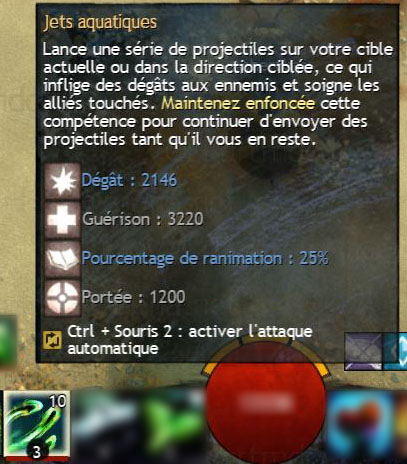 Lance une série de projectiles sur votre cible actuelle ou dans la direction ciblée, ce qui inflige des dégâts aux ennemis et soigne les alliés touchés. Maintenez enfoncée cette compétence pour continuer d’envoyer des projectiles tant qu’il vous en reste.