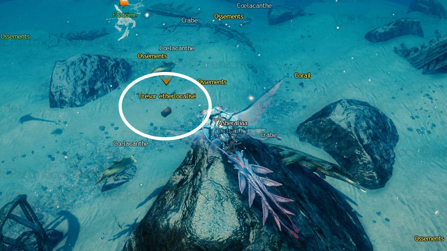 Utiliser le F2 jusqu’à trouver des Trésors étherlocalisés, s’obtient de manière aléatoire.