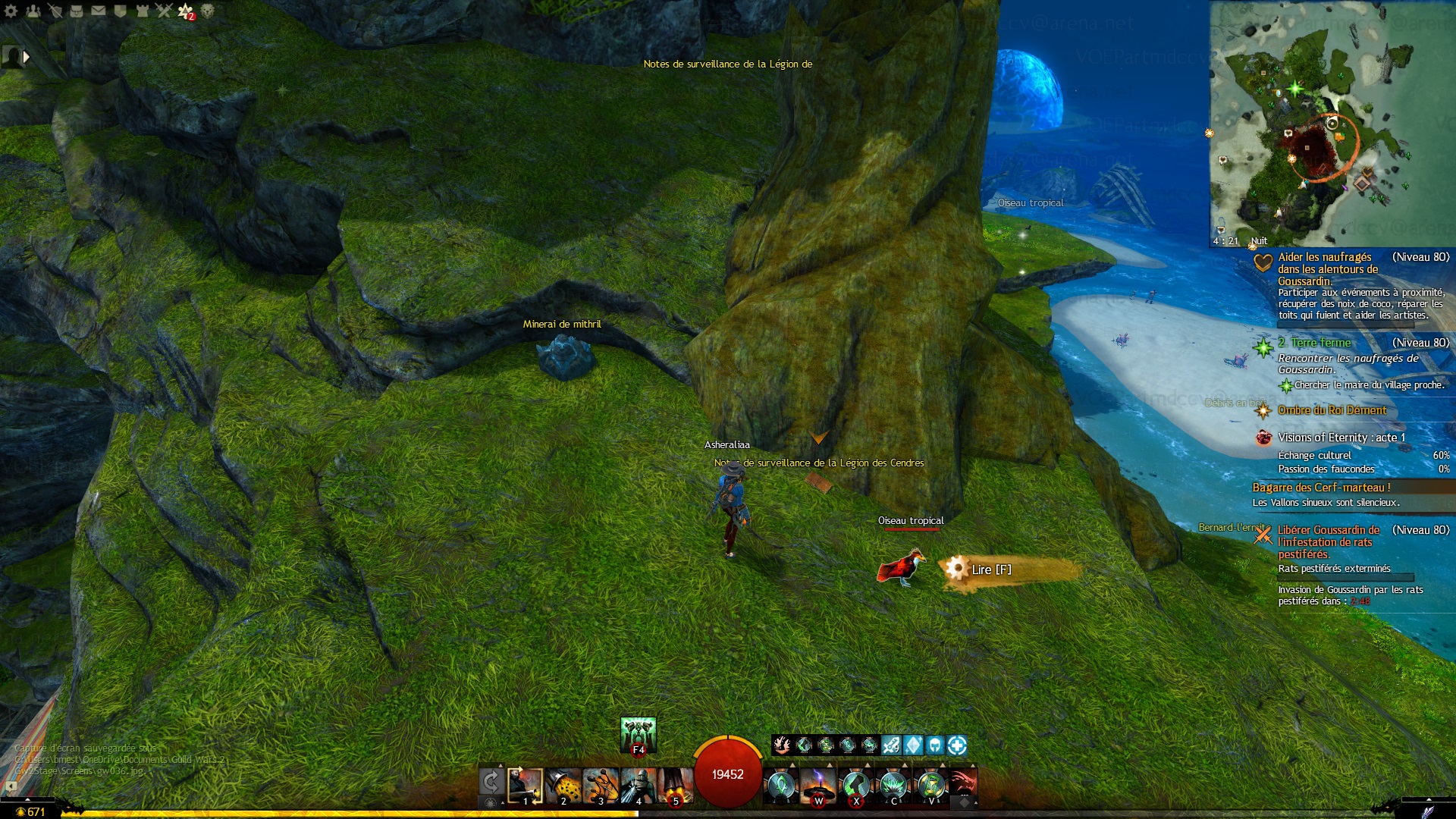 en hauteur, au nord du Point de passage du quai de Goussardin, s'intitule "Notes de surveillance de la Légion des Cendres"