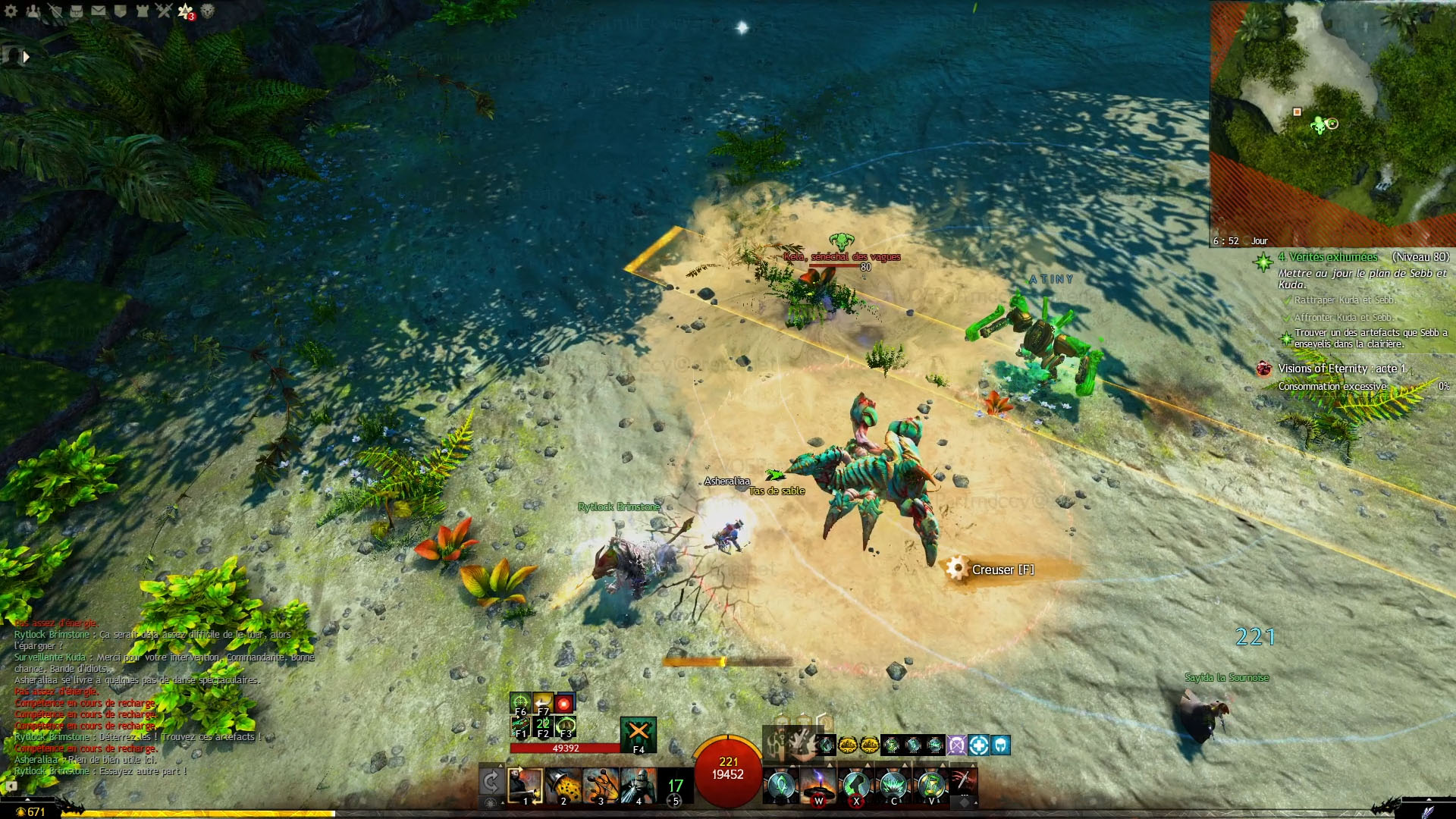 Lors du combat contre Kala, sénéchal des vagues, ne pas se faire toucher par l’une des AOE jaunes pendant les phases de fouille.