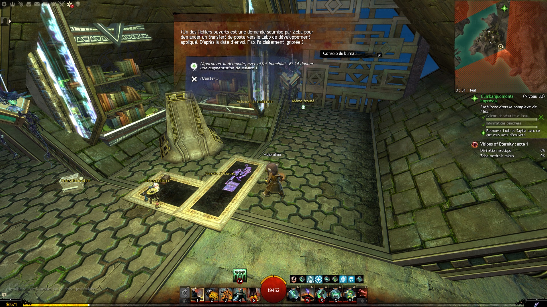 Après avoir récupéré assez de preuves dans le bureau de Flaxx, interagir avec la Console du bureau et approuver la demande de Zeba.