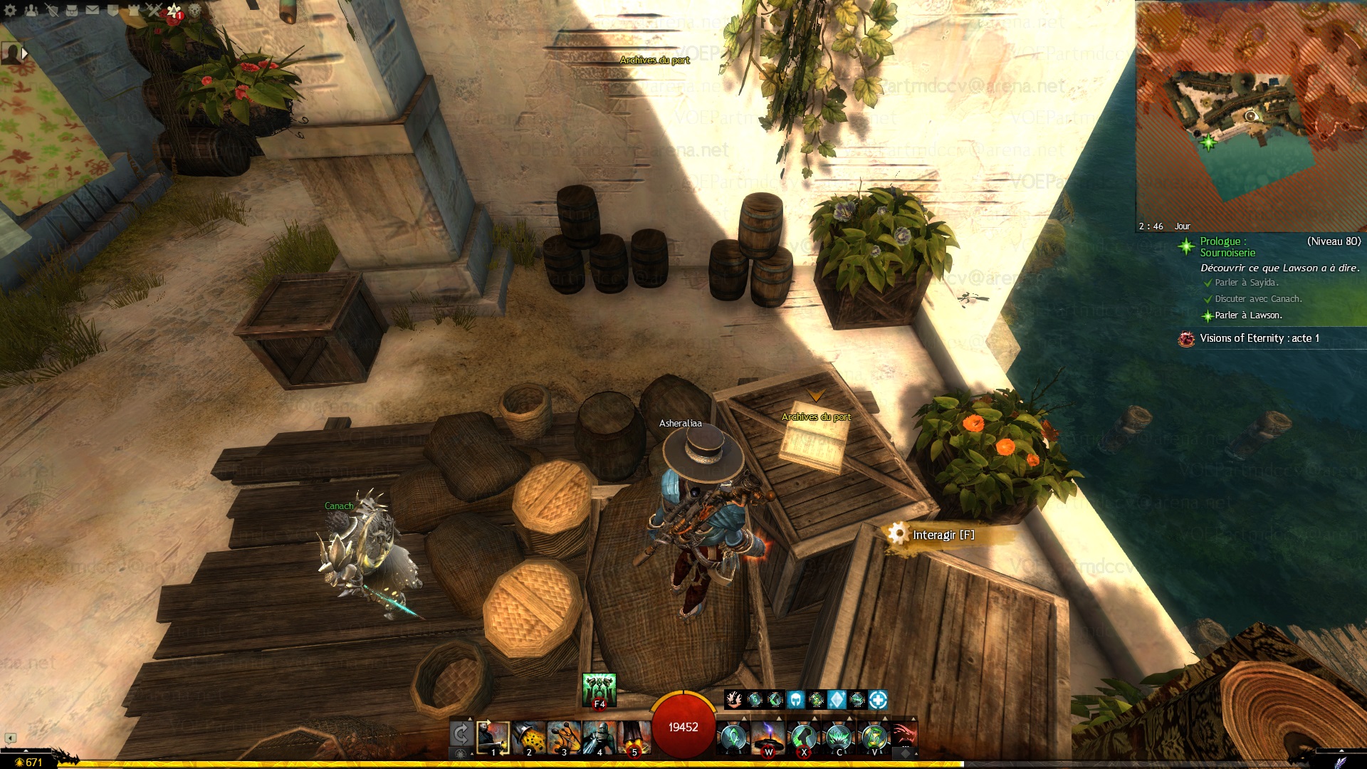 Interagir avec l'Archive du port, juste après avoir discuté avec Canach.