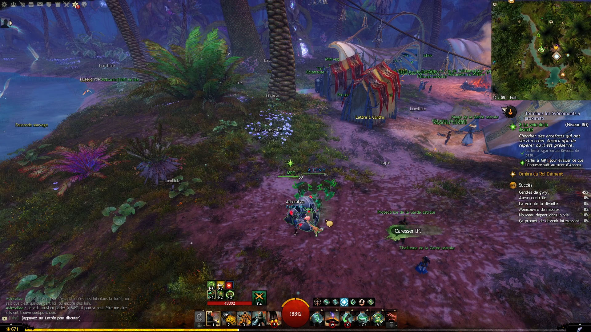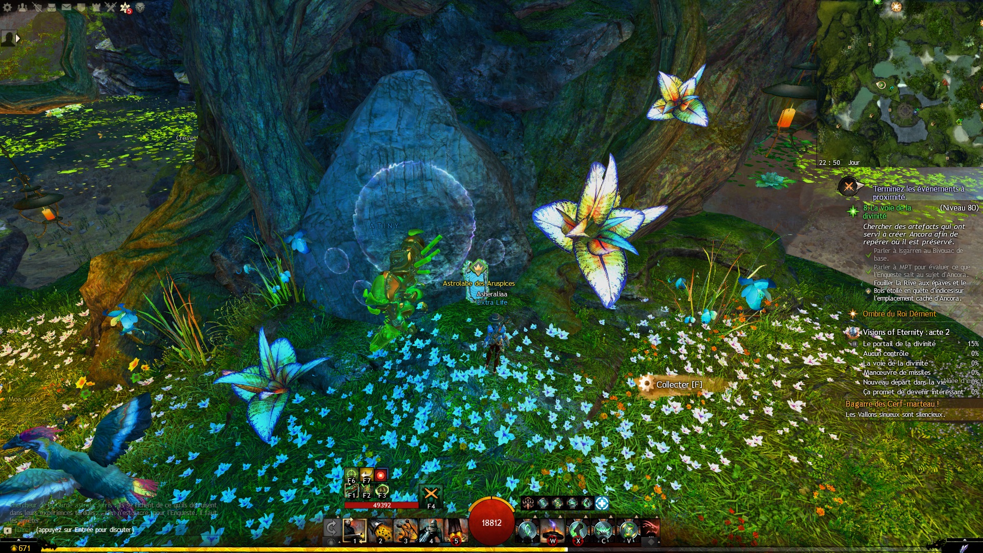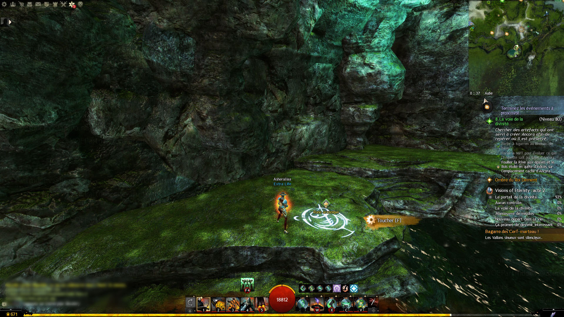 - dans le Bois étoilé, dans les hauteurs du Sanctuaire étincelant, interagir avec la Rune ineffable
