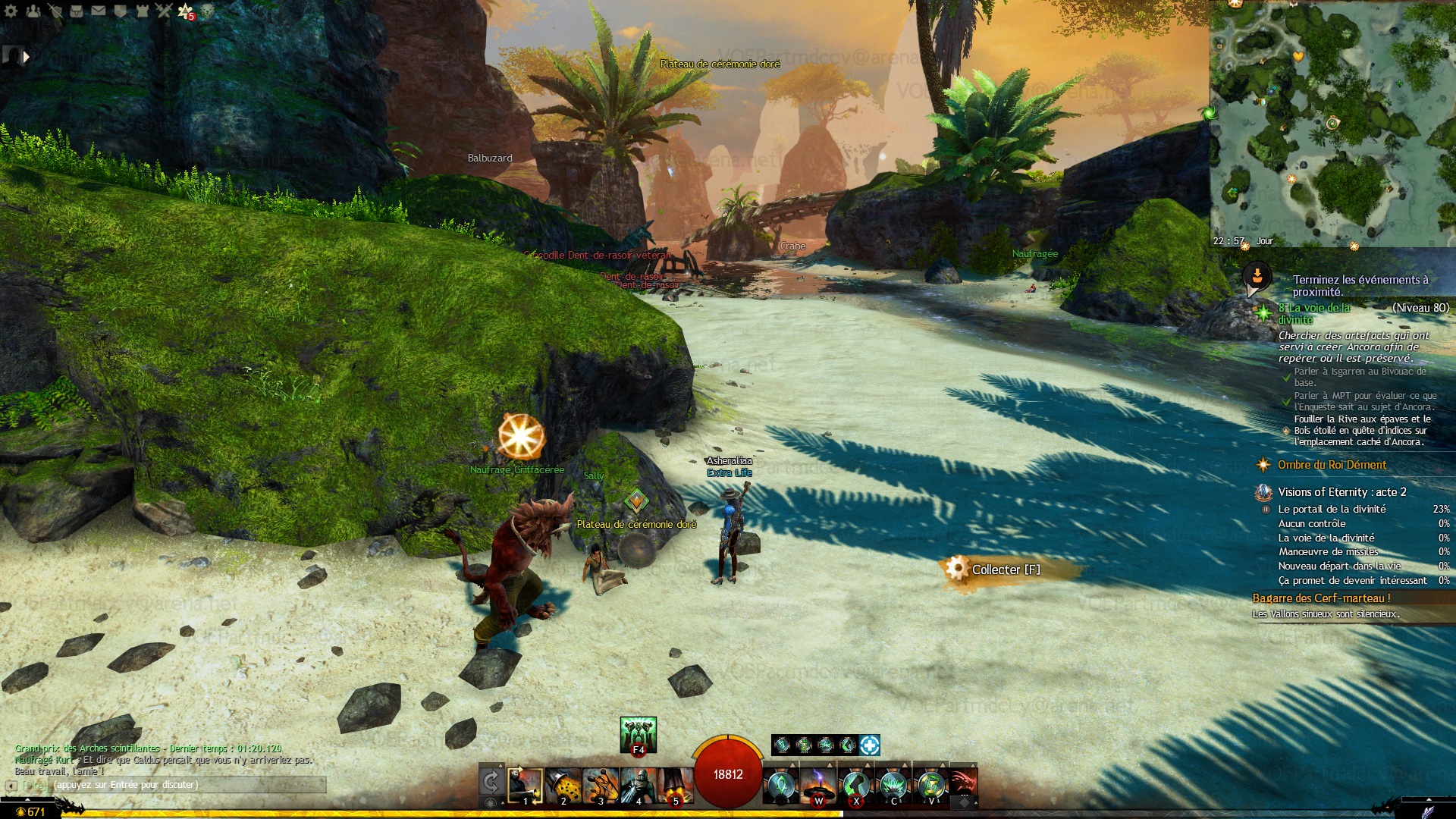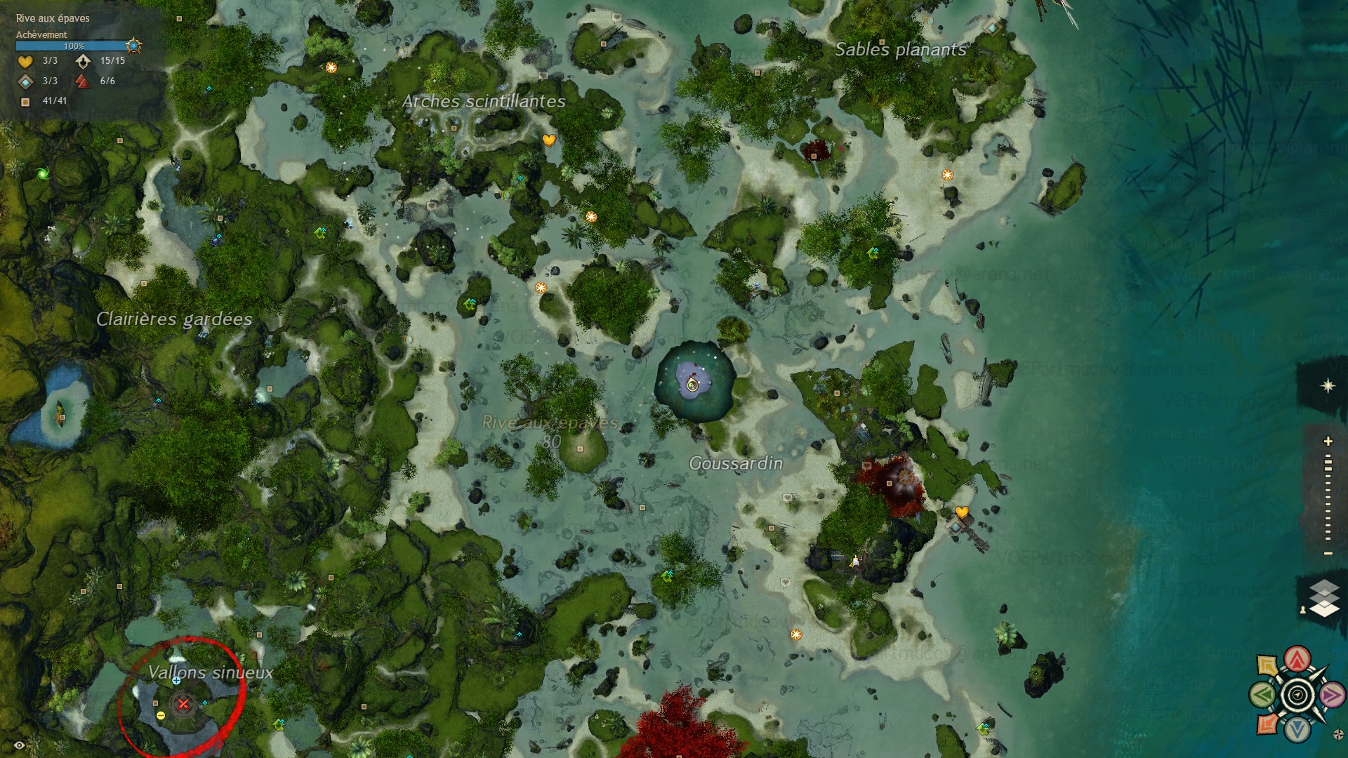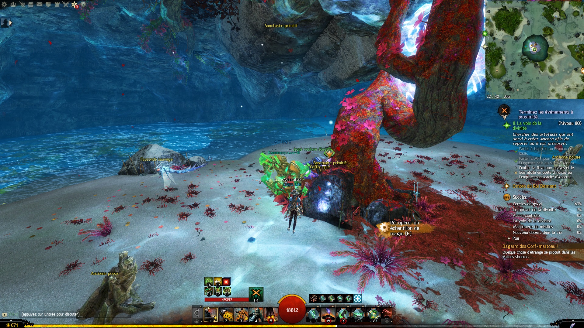 - Interagir avec le Sanctuaire primitif, situé dans une grotte sous-marine de la Rive aux épaves, au nord de Goussardin, accessible grace aux tunnels aquatiques sous-terrains