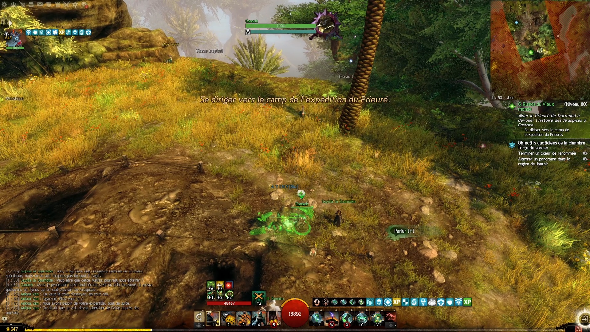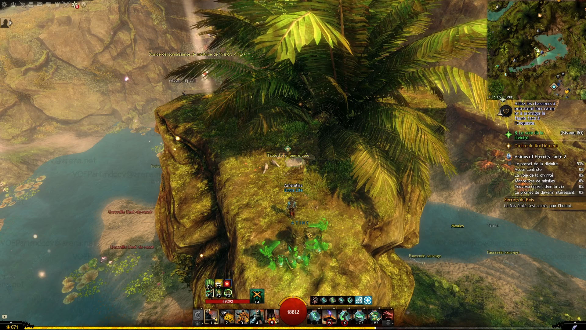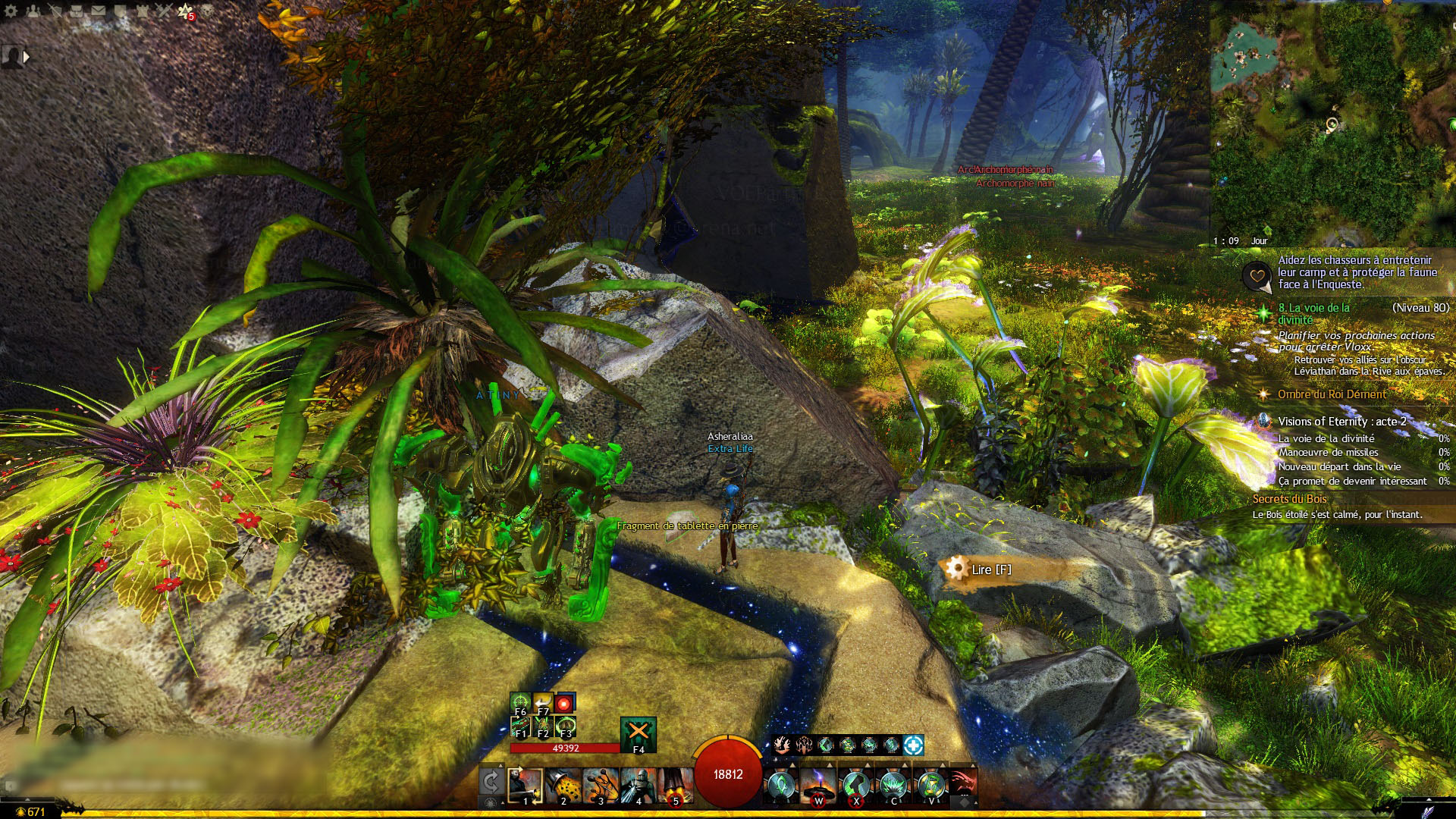 - dans le Bois étoilé, sur un îlot flottant au nord-ouest du Point de passage de l’expédition du Prieuré, interagir avec la Tablette en pierre usée