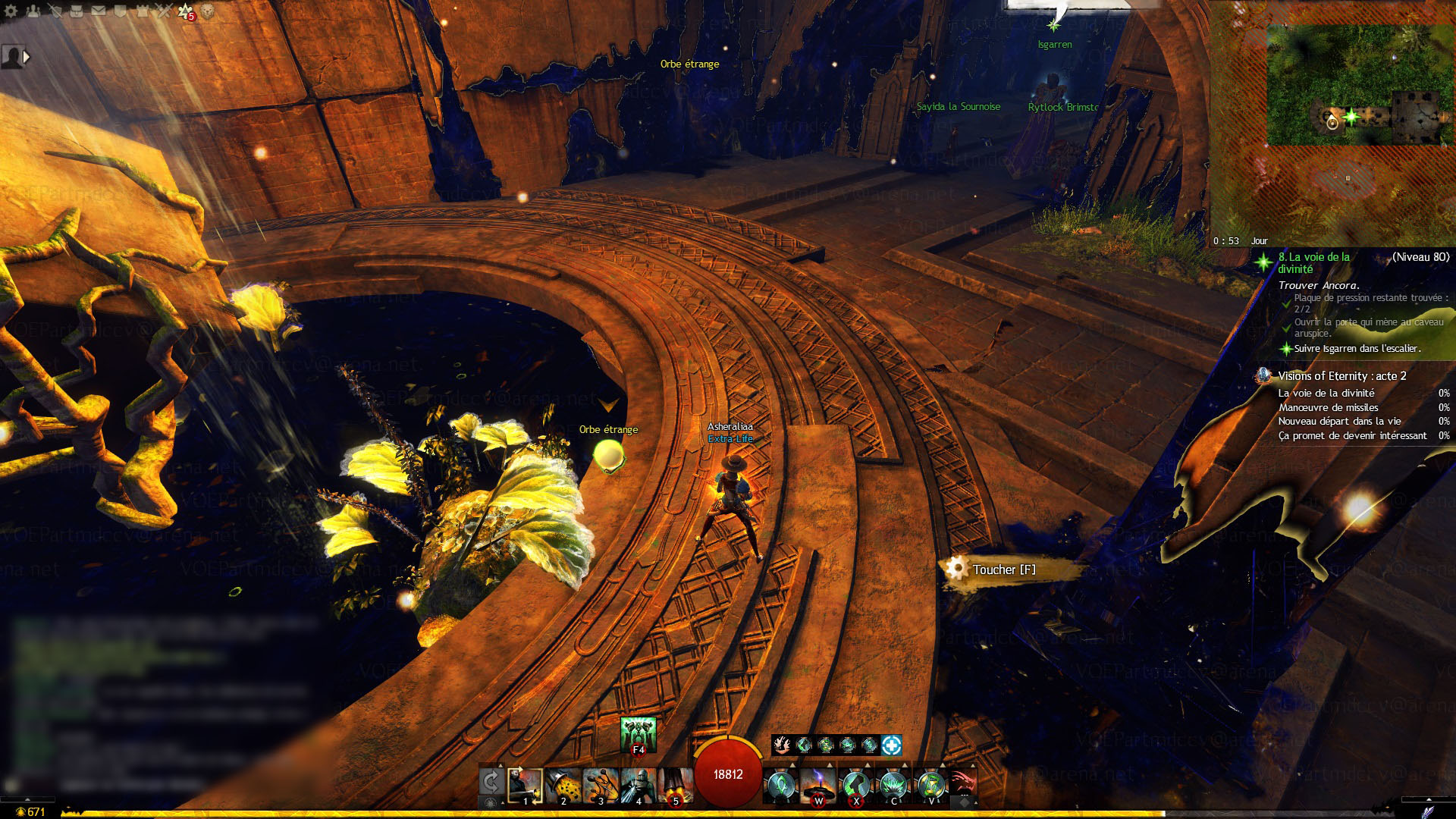 Dès l’entrée dans le caveau sous l’arbre, Isgarren défend quiconque de toucher à quoi que ce soit. Interagir avec l’Orbe étrange.
