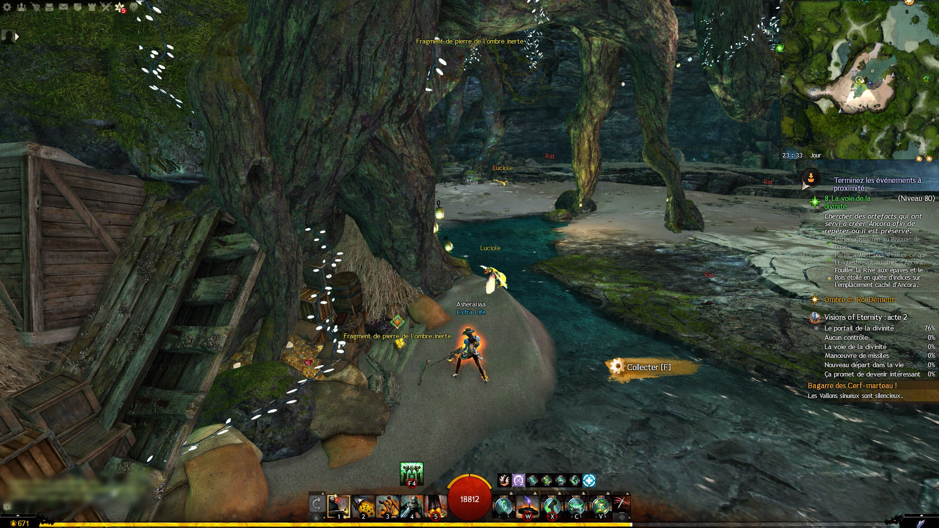 - dans la Rive aux épaves, dans la grotte sous-marine au niveau de Coeur de marin, interagir avec le Grimoire ancien